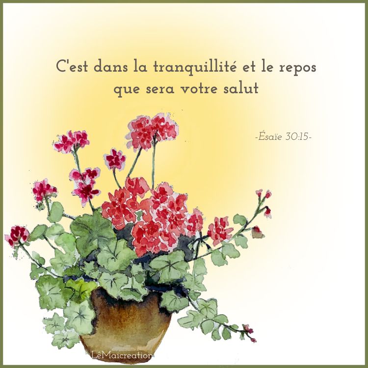 Pour ce qui est du verset choisi celui d’Ésaïe 30:15 nous invite à la tranquillité et au repos. Un vrai challenge dans notre société moderne où tout va très vite. Sachons rester au pied du Divin Maître.