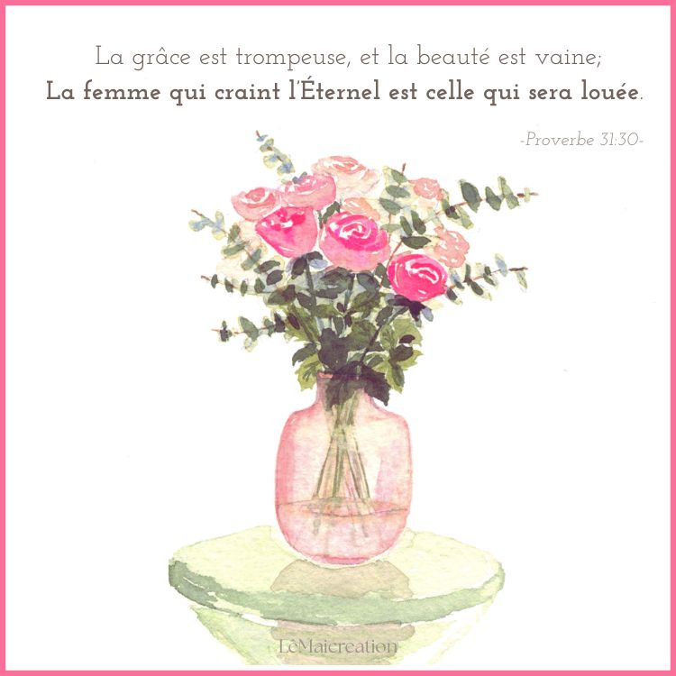 « La grâce est trompeuse, et la beauté est vaine; la femme qui craint l’Éternel est celle qui sera louée »